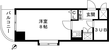 1K(洋室8帖) / 21.87 m2(6.61 坪) |