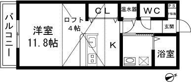 1R(洋室11.8帖) / 39.5 m2(11.94 坪) |