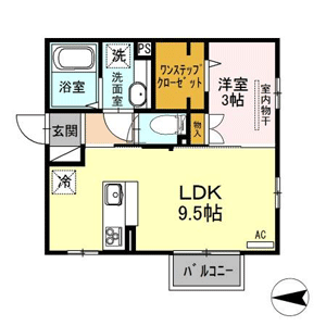 1LDK(洋室3帖、LDK9.5帖) / 32.62 m2(9.86 坪) |