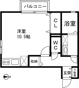 1R(洋室10.5帖) / 30.56 m2(9.24 坪) |