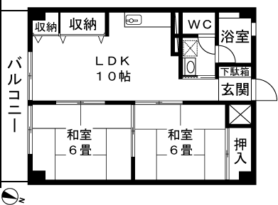 2LDK(和室6畳、和室6畳、LDK10帖) / 50.22 m2(15.19 坪) |