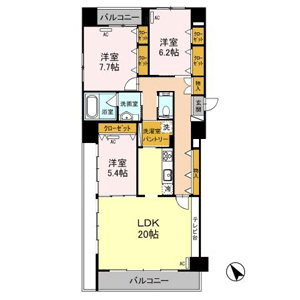 3LDK(洋室5.4帖、洋室6.2帖、洋室7.7帖、LDK20帖) / 100.02 m2(30.25 坪) |