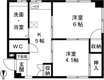 2K(洋室4.5帖、洋室6帖) / 35 m2(10.58 坪) |