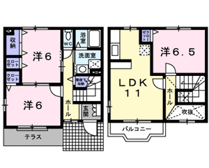 3LDK(洋室6帖、洋室6帖、洋室6.5帖、LDK11帖) / 74.32 m2(22.48 坪) |