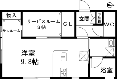 1R(洋室9.8帖、S3帖) / 35.39 m2(10.7 坪) |
