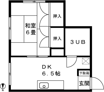 1DK(和室6畳、DK6.5帖) / 25.6 m2(7.74 坪) |