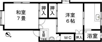 2K(和室7畳、洋室6帖) / 38.27 m2(11.57 坪) |