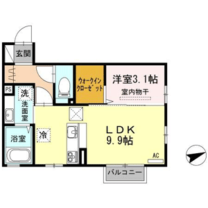 1LDK(洋室3.1帖、LDK9.9帖) / 34.76 m2(10.51 坪) |