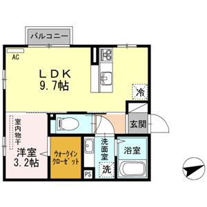 1LDK(洋室3.2帖、LDK9.7帖) / 32.77 m2(9.91 坪) |
