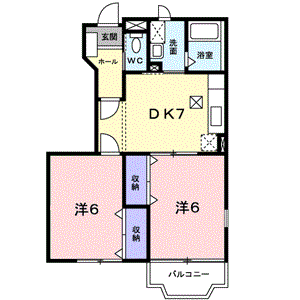 2DK(洋室6帖、洋室6帖、DK7帖) / 44.34 m2(13.41 坪) |