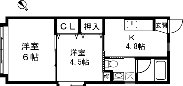 2K(洋室4.5帖、洋室6帖) / 33.12 m2(10.01 坪) |