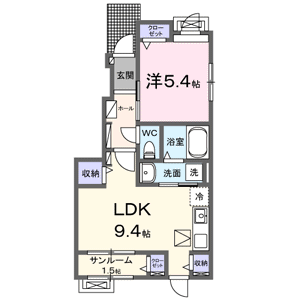 1LDK(洋室5.4帖、LDK9.4帖) / 40.15 m2(12.14 坪) |