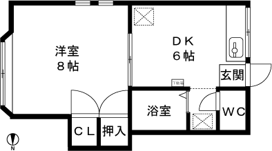 1DK(洋室8帖、DK6帖) / 29.81 m2(9.01 坪) |