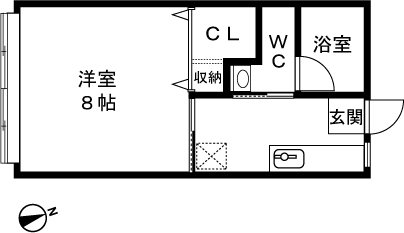 1K(洋室8帖) / 26.44 m2(7.99 坪) |