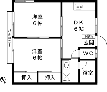 2DK(洋室6帖、洋室6帖、DK6帖) / 41.81 m2(12.64 坪) |