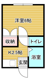 1K(洋室6帖) / 19.87 m2(6.01 坪) |