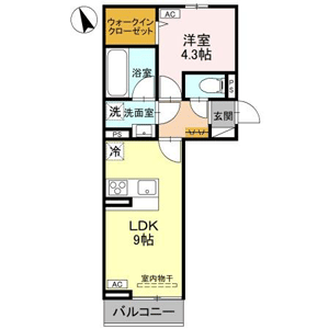 1LDK(洋室4.3帖、LDK9帖) / 35.96 m2(10.87 坪) |