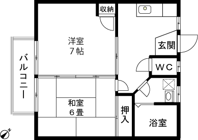 2K(和室6畳、洋室7帖) / 38.55 m2(11.66 坪) |