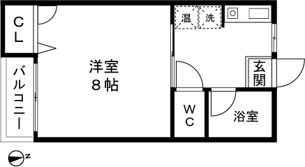 1K(洋室8帖) / 24.42 m2(7.38 坪) |