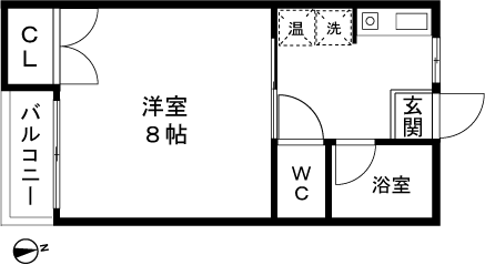 1K(洋室8帖) / 24.42 m2(7.38 坪) |