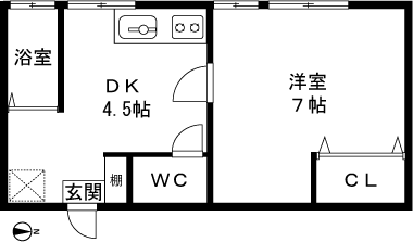 1DK(洋室7帖、DK4.5帖) / 26.49 m2(8.01 坪) |