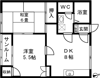 2DK(和室6畳、洋室5.5帖、DK8帖) / 46.27 m2(13.99 坪) |