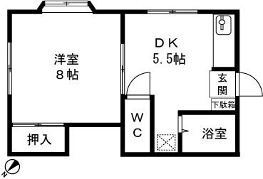 1DK(洋室8帖、DK5.5帖) / 31.46 m2(9.51 坪) |