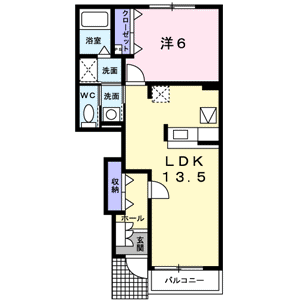 1LDK(洋室6帖、LDK13.5帖) / 44.82 m2(13.55 坪) |
