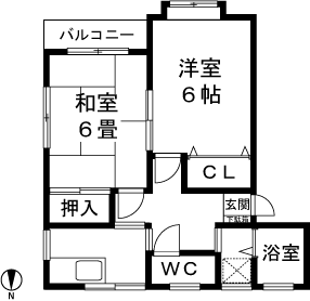 2K(和室6畳、洋室6帖) / 39.6 m2(11.97 坪) |