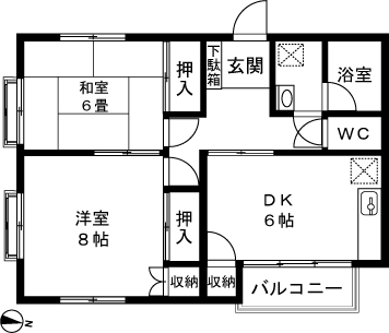 2DK(和室6畳、洋室8帖、DK6帖) / 57.42 m2(17.36 坪) |
