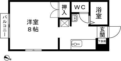 1K(洋室8帖) / 26.49 m2(8.01 坪) |