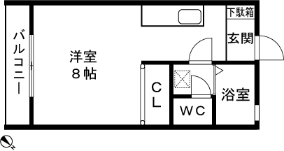 1K(洋室8帖) / 26.49 m2(8.01 坪) |