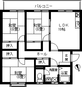 3LDK(和室6畳、和室6畳、和室6畳、LDK10帖) / 74.49 m2(22.53 坪) |