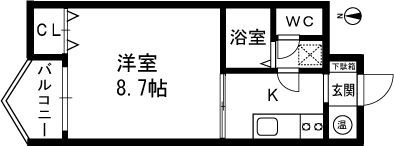 1K(洋室8.7帖) / 30.96 m2(9.36 坪) |