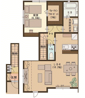 1LDK(洋室6.5帖、LDK18.2帖) / 64.79 m2(19.59 坪) |
