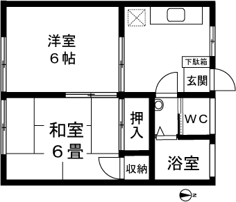2K(和室6畳、洋室6帖) / 34.7 m2(10.49 坪) |