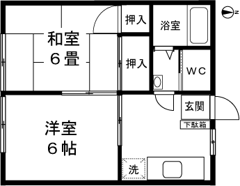 2K(和室6畳、洋室6帖) / 34.7 m2(10.49 坪) |