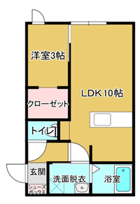 1LDK(洋室3帖、LDK10帖) / 33.12 m2(10.01 坪) |