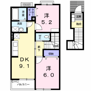 2DK(洋室5.2帖、洋室6帖、DK9.1帖) / 50.86 m2(15.38 坪) |